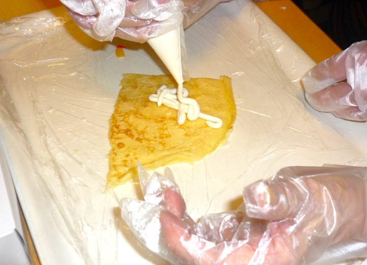 生地に潰したさつまいもとりんごを乗せ、パイ生地で包みました!オーブンで焼いたら完成です!(^^)!