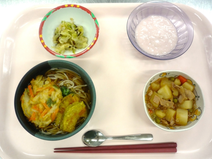 利用者様1人1人の栄養状態を評価し、他職種と連携して栄養ケアを行っております。 入所時、利用者様の嗜好やアレルギーの有無など食生活に必要な事項を聞き取り、食事に反映しています。咀嚼・嚥下機能、麻痺等状況に応じて、安心して食べていただけるよう食事形態や食事環境に配慮しています。